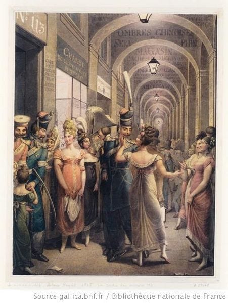 Nach einem langen Geschäftstag und einem diplomatischen Abendessen macht Morris einen einsamen Spaziergang durch den Palais-Royal — damals ein geschäftiges Labyrinth aus Arkaden, gesäumt von Cafés, Spielsalons (an denen er kein Interesse hatte) und Sexangebot.